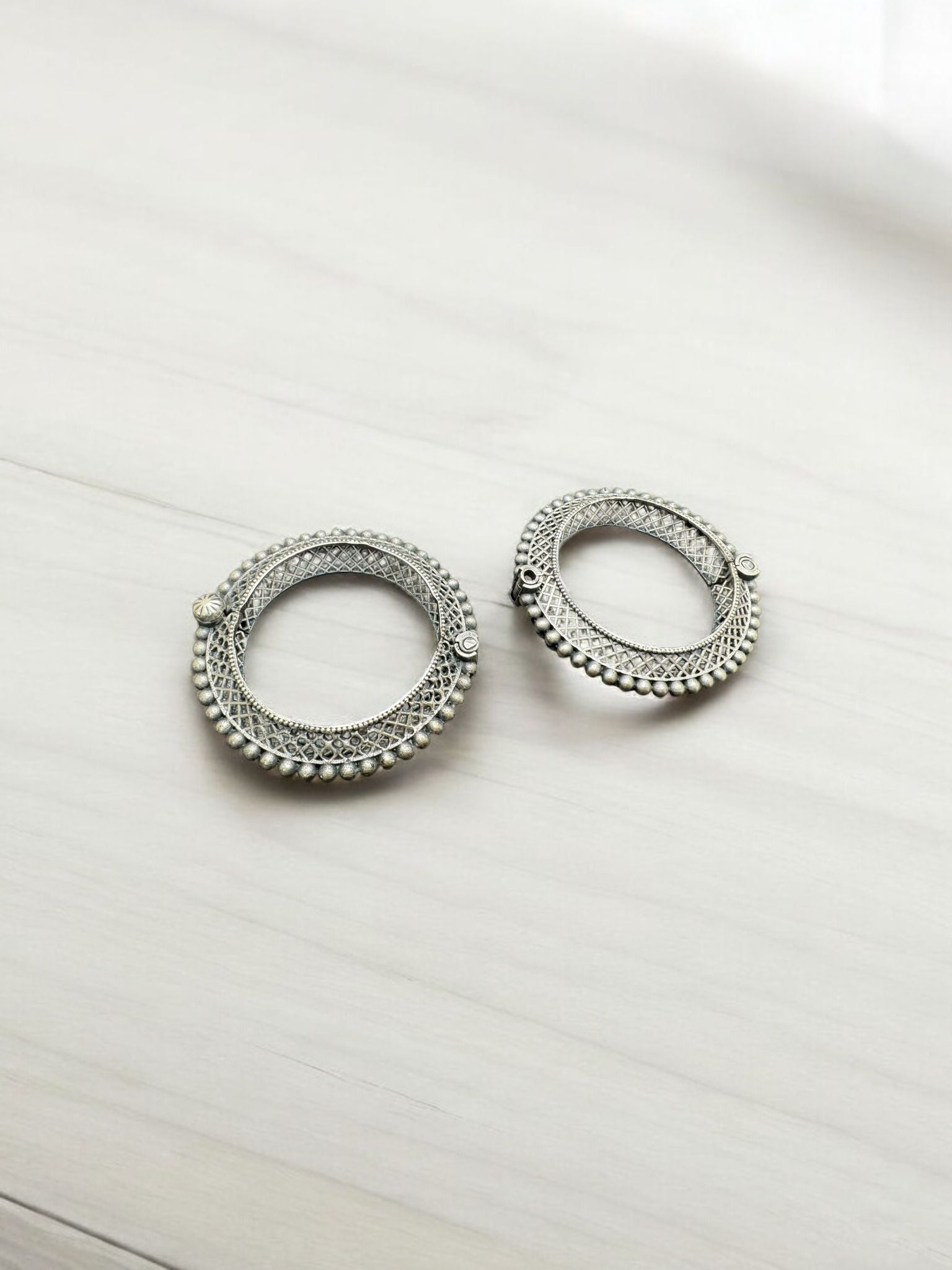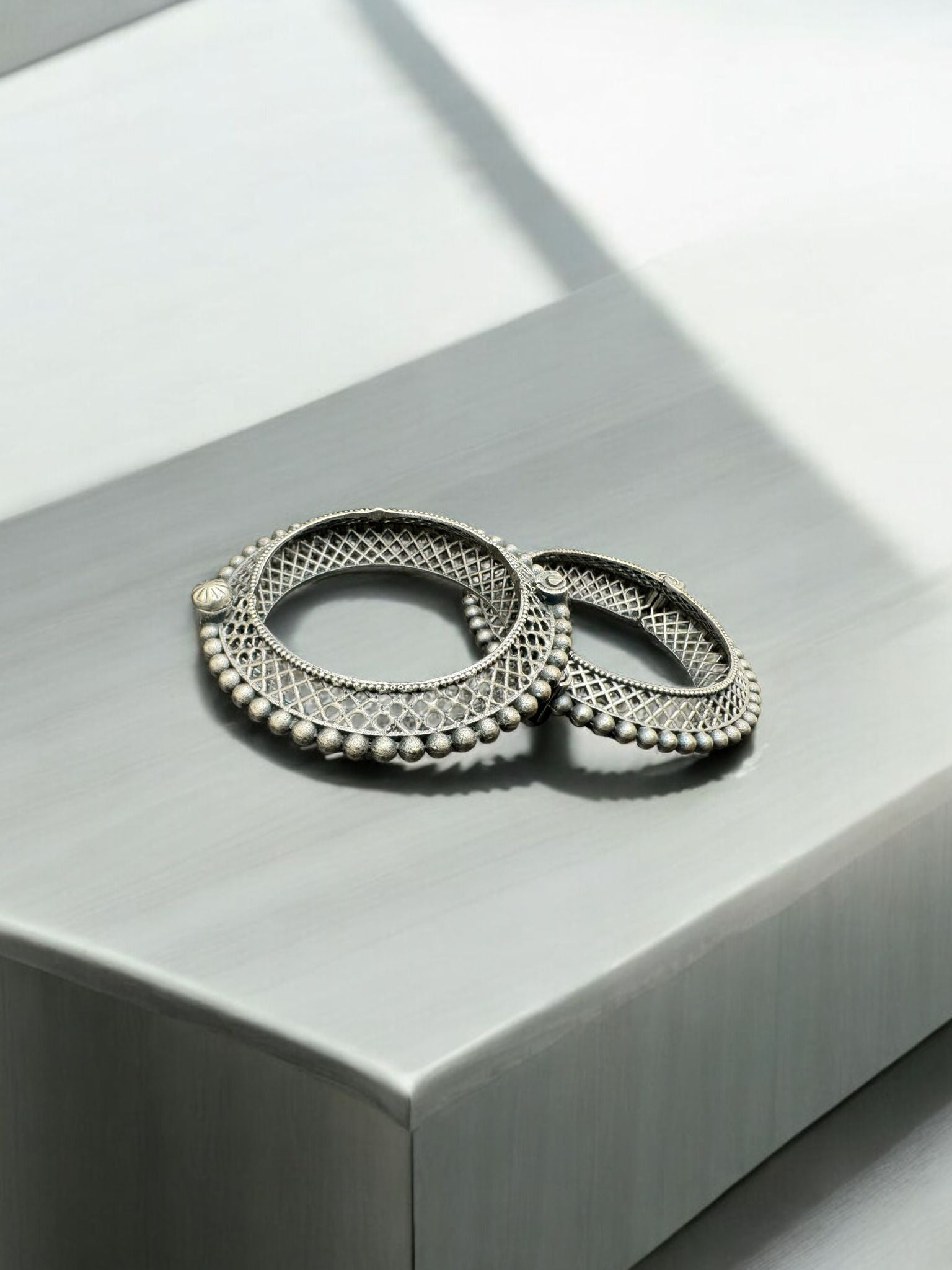 Embrace timeless elegance with the Eternal Radiance Kada. Crafted with intricate latticework and adorned with subtle, traditional motifs, this kada exudes sophistication and charm. Its classic circular design, embellished with delicate beaded accents, offers a graceful touch to any ensemble, making it a versatile piece for both casual and formal occasions.