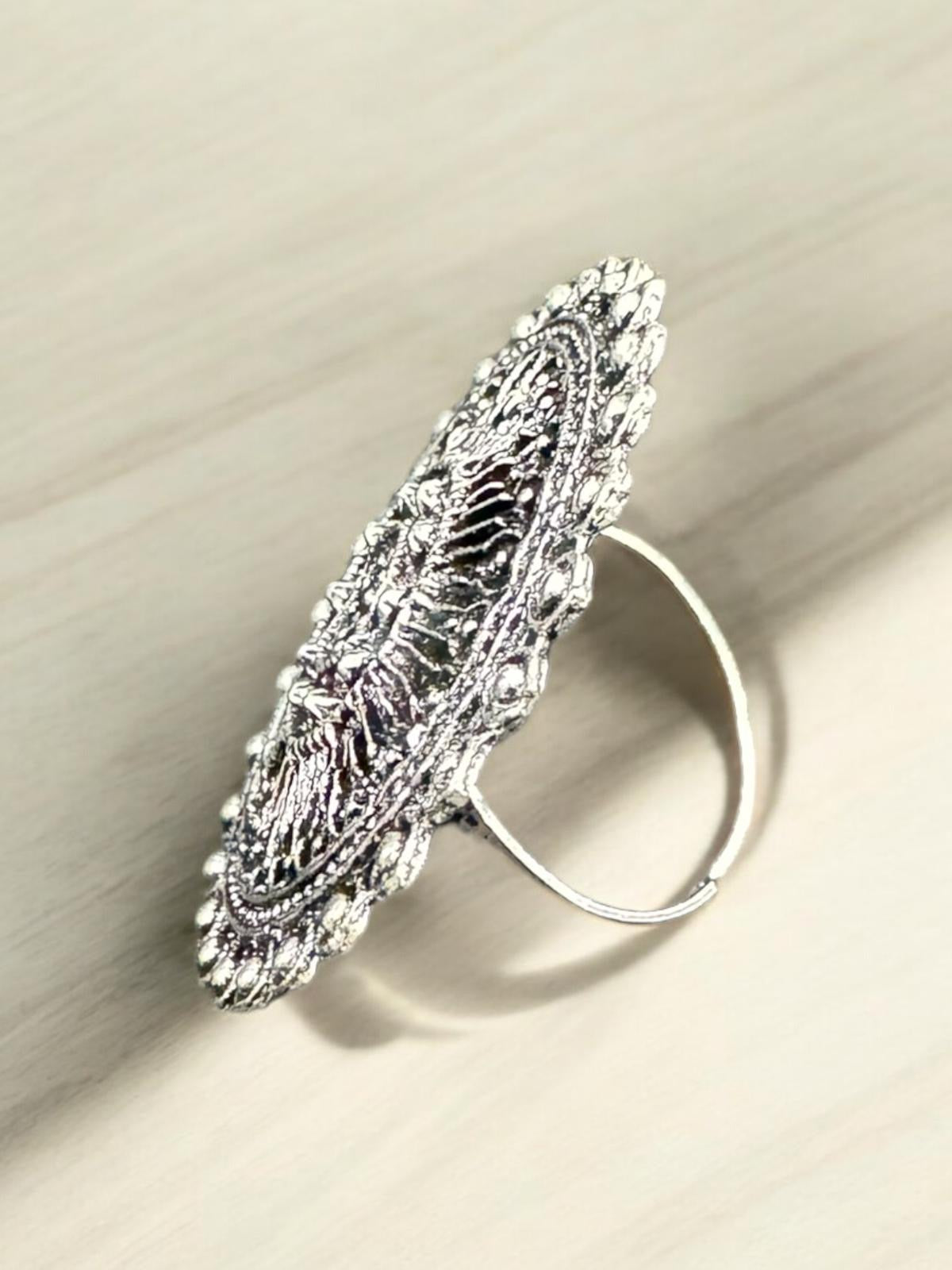 Embrace the energy of the sun with the Radiant Sunburst Mandala Ring. This intricately designed piece showcases a stunning circular mandala pattern, symbolizing harmony and balance, with a central burst that evokes the warmth and brilliance of the sun. Crafted with precision, this ring is perfect for those who appreciate the blend of traditional motifs with contemporary elegance, making it a timeless accessory for any occasion.